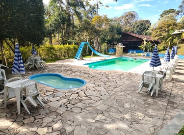 Tudo isso em um ambiente acolhedor, seguro e rodeado por uma natureza exuberante, perfeito para descansar, comemorar e criar memórias inesquecíveis.